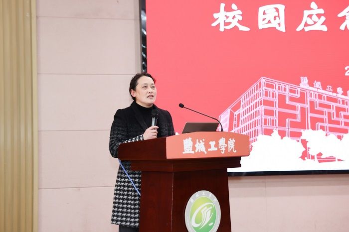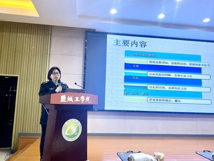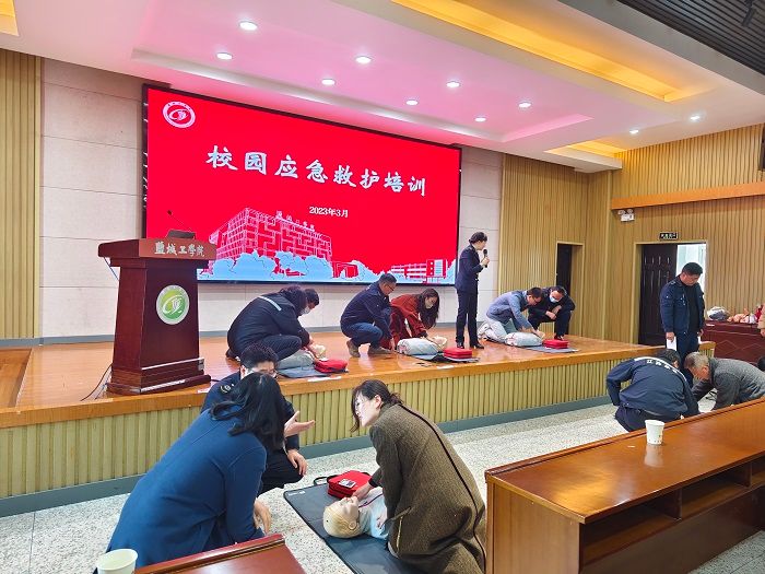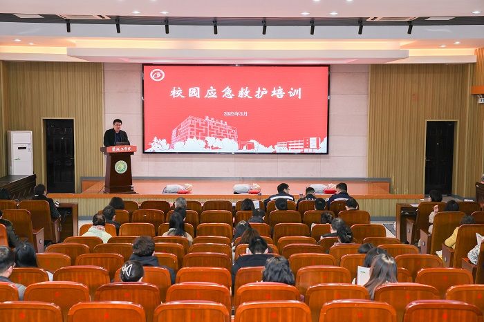 传承雷锋精神,践行志愿服务,3月4日,在希望大道校区机械馆报告厅,学校举办校园应急救护培训,盐城市急救医疗中心培训科科长施亚萍带队授课。党委常委、副校长张勤芳出席。学生处处长徐新华主持。学生处工作人员、全体专兼职辅导员参加。
