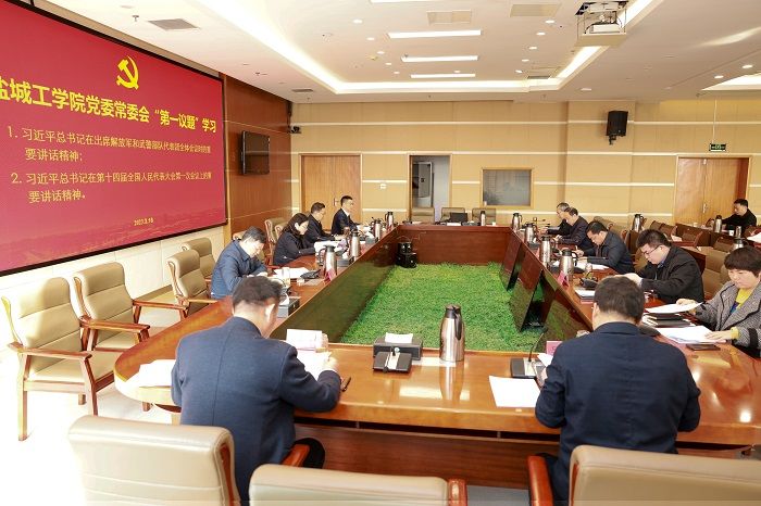3月16日上午,在希望大道校区行政楼9楼视频会议室,校党委常委会以“第一议题”形式,认真学习习近平总书记在出席解放军和武警部队代表团全体会议时、在第十四届全国人民代表大会第一次会议上的重要讲话精神。