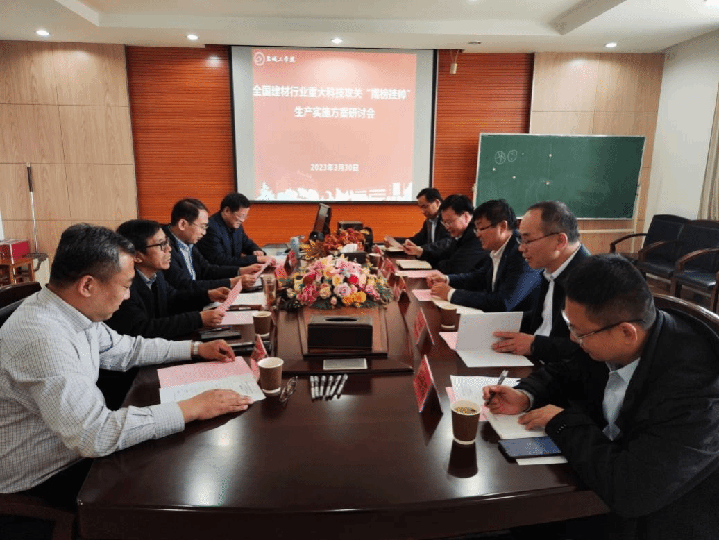 3月30日下午,中建材科创新研究院院长张忠伦、科技发展部副部长刘振森,枣庄中联水泥有限公司总经理于光民,枣庄中联水泥有限公司副总工、技术装备部部长祁广旺,枣庄中联水泥有限公司“鲁班工匠”获得者李理国一行5人来贝博就联合获批的首批全国建材行业重大科技攻关“揭榜挂帅”项目进行生产实施方案研讨交流。贝博副校长、盐城市政协副主席丁成,产业技术研究院负责人及课题组相关人员参加研讨。