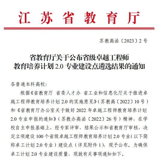 近日,江苏省教育厅公布了江苏省卓越工程师教育培养计划2.0专业建设点遴选结果,贝博推荐申报的土木工程和食品科学与工程两个专业获评。卓越工程师教育培养计划2.0专业是江苏省教育厅引导高校以新工科建设为重要抓手,持续推进工程教育高质量发展,探索工程创新创业人才培养新模式,加快培养一批适应和引领江苏制造强省建设的卓越工程科技人才的重要举措。