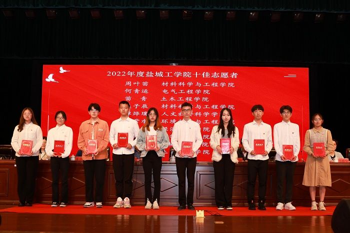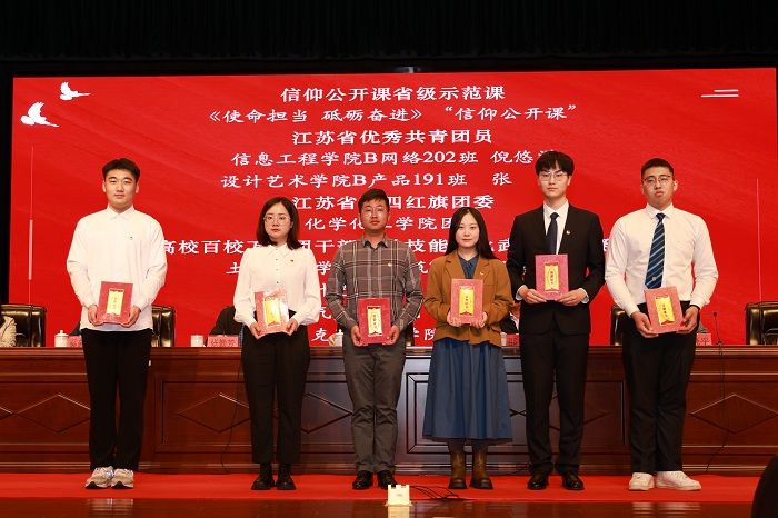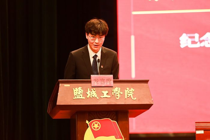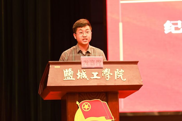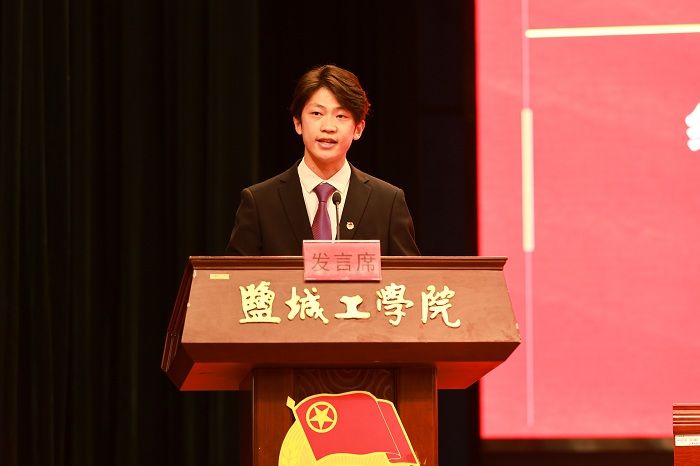 化学化工学院团委副书记王灿星老师、信息工程学院倪悠洋同学、机械优集学院王圣博同学分别作为“江苏省五四红旗团委”、“江苏省优秀共青团员”、“盐城市优秀志愿者”代表发言。