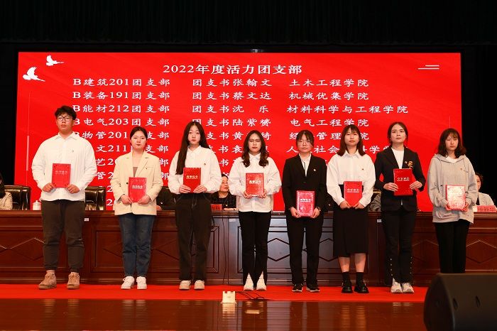 方海林、邵荣、张勤芳等分别为2022年度国家级获奖代表、获得省级以上表彰的集体和个人、校“五四红旗团委(标兵)”、“共青团工作先进工作者”、“十佳共青团员标兵”、“魅力团支书”、“活力团支部”和“十佳青年志愿者”颁发了奖牌和证书。