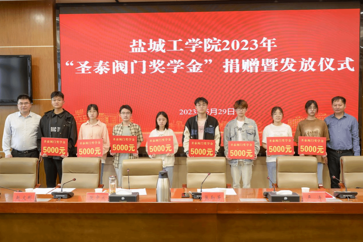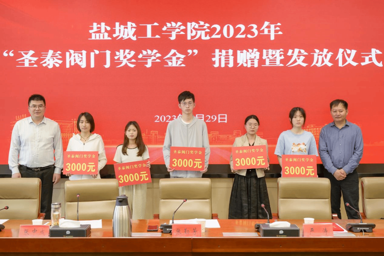 5月29日上午,2023年“圣泰阀门”奖学金捐赠暨发放仪式在希望大道校区行政楼九楼会议室举行。校党委常委、副校长张勤芳,江苏圣泰阀门有限公司董事长严涛出席。会议由学生处处长徐新华主持,校办、学生处、财务处等部门负责同志和师生代表参加。