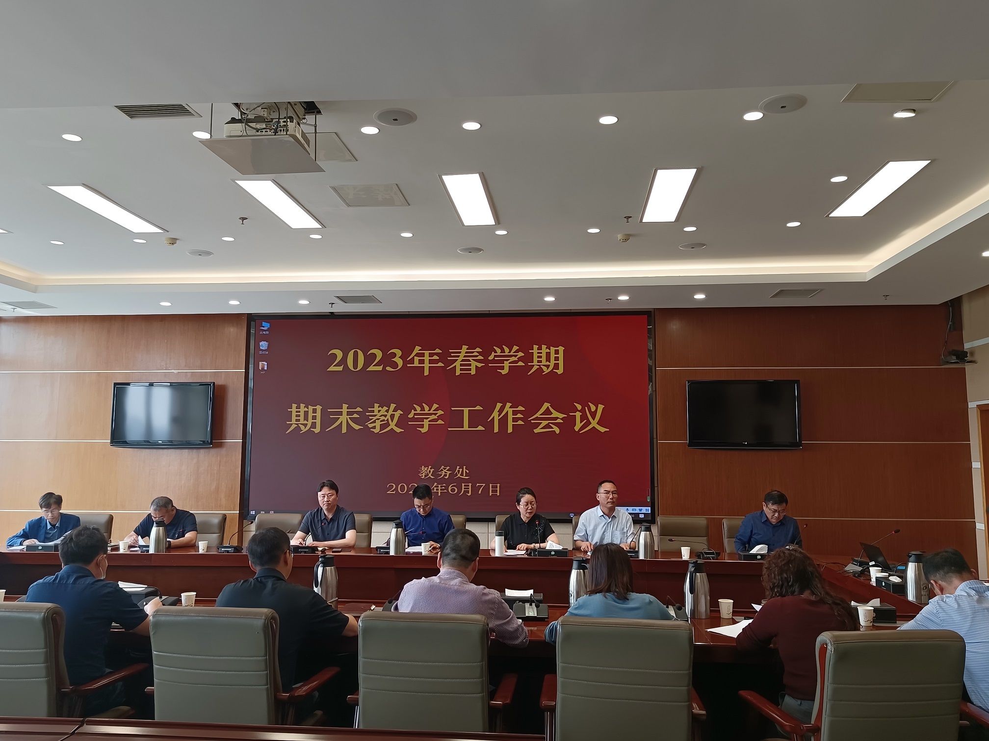 6月7日上午,学校在行政楼9楼视频会议室召开2023年春学期期末教学工作会议,党委常委、副校长王伟出席会议并讲话。教务处处长余晓红主持,各二级学院分管教学副院长及相关工作人员参加会议。