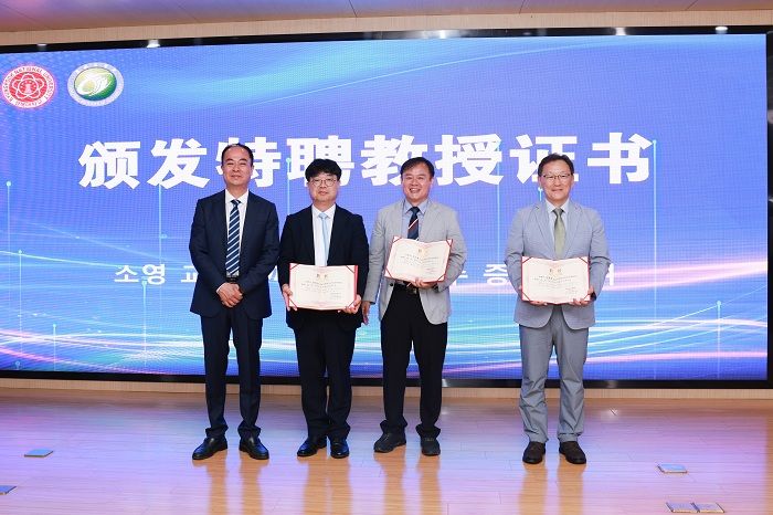 交流会上,邵荣和金敬旻分别代表双方高校签署了bb贝博艾弗森官方网站-韩国庆北大学合作备忘录。邵荣为庆北大学洪元和、金敬旻、李元宁、金学润颁发外聘教授证书。