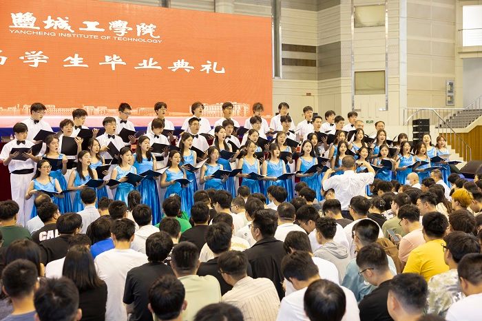 “我的青春奔跃,理想飞翔,东方湿地滋育社会栋梁;勇于创造我有不懈向往,创新创业我写精彩篇章;我为你薪火传承增添骄傲,风雨彩虹化作灿烂的阳光……”全体师生齐唱《我从这里走向四方》,毕业典礼在歌声中圆满结束。
