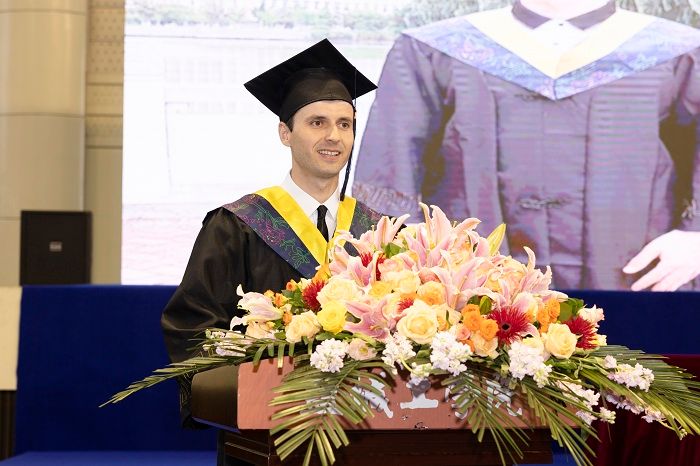 留学生代表:塔吉克斯坦籍留学生、信息工程学院Z计算机191班高兴同学发言