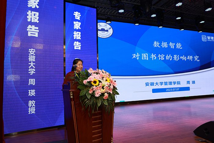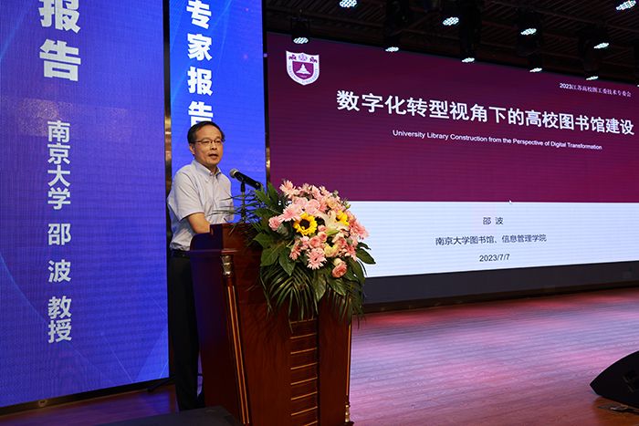 会上,中山大学资讯管理学院首任院长曹树金教授、安徽大学管理学院院长周瑛教授、南京大学信息管理学院邵波教授分别作了题为“chatGPT 在图书馆中应用及前景”“数据智能对图书馆的影响研究”“数字化转型视角下的高校图书馆建设”的主题报告,南京图书馆、东南大学图书馆分别就“信息技术在智慧图书馆建设中的应用”“高校图书馆数据管理与服务实践”进行会议交流。