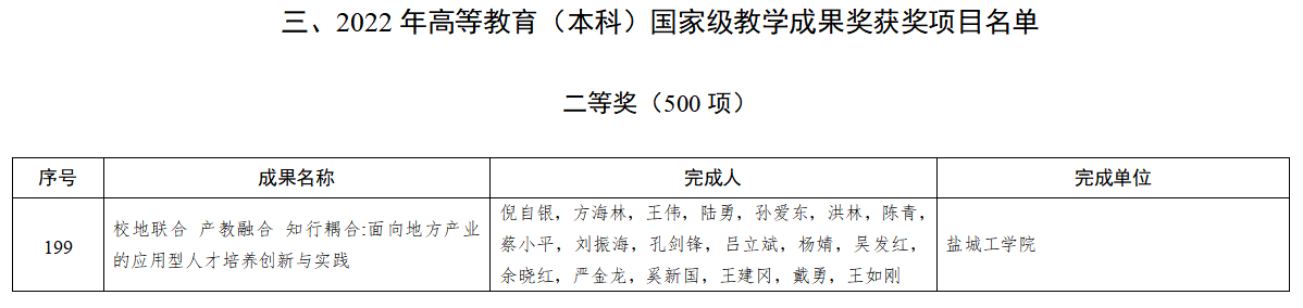 近日,教育部公布了2022年国家级教学成果奖获奖名单,共计572个项目入选高等教育(本科)国家级教学成果奖获奖项目名单,bb贝博艾弗森官方网站以第一完成单位获得二等奖1项。