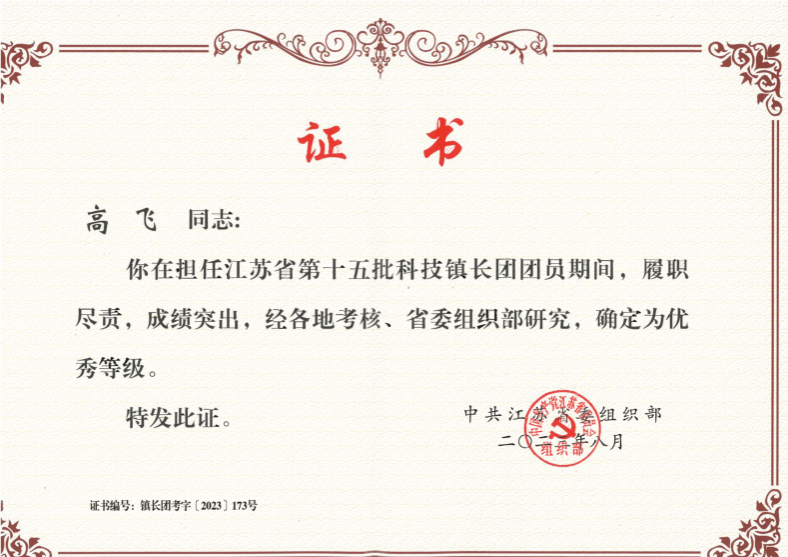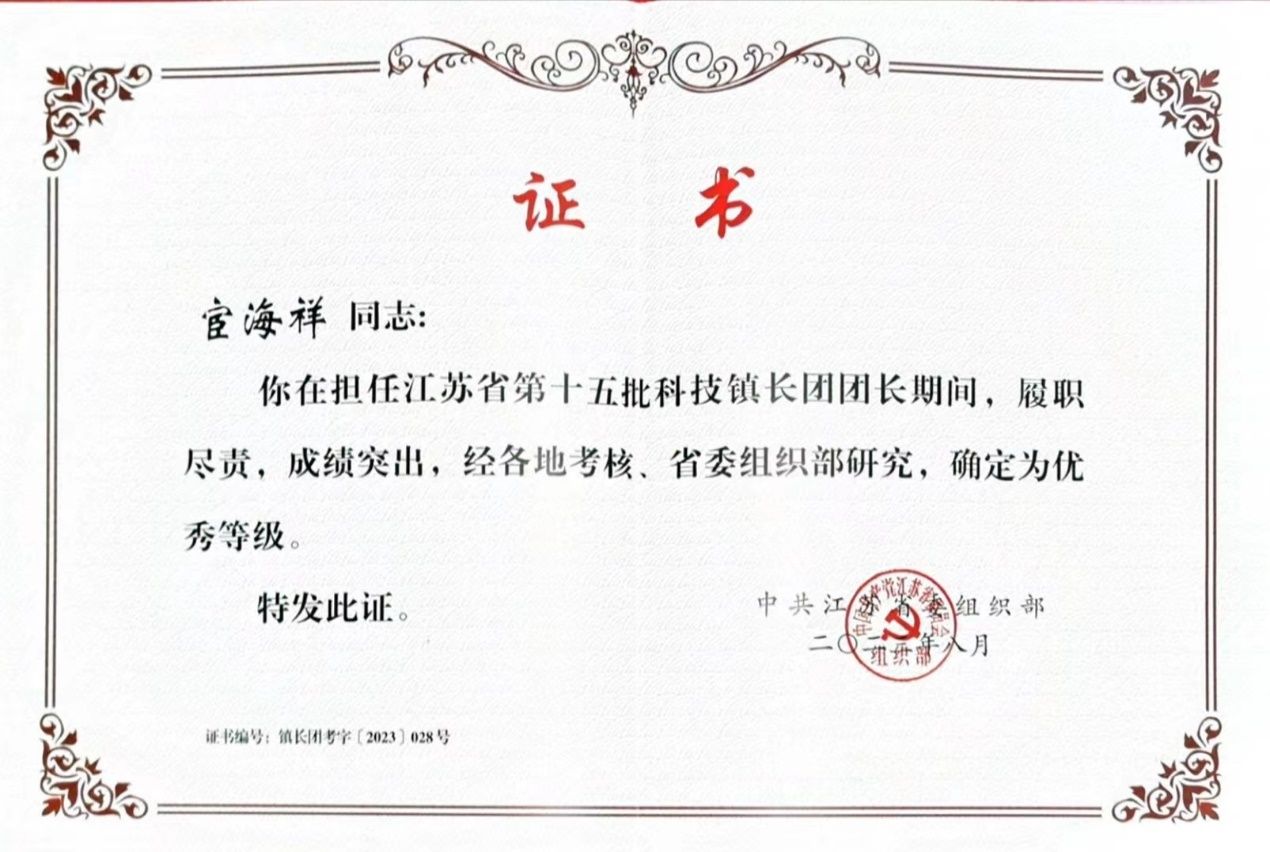 近日,全省科技镇长团工作推进会暨第十五、十六批轮换工作会议在南京召开,贝博选派的省第十五批科技镇长团成员宦海祥、高飞被评为考核优秀。