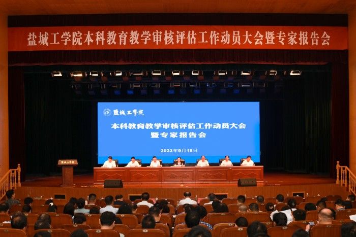 9月18日下午,在希望大道校区行政楼报告厅,贝博召开教育部新一轮本科教育教学审核评估动员大会及专家报告会,全面部署学校本科教育教学审核评估工作。会议邀请江苏理工学院原党委书记朱林生教授来校作审核评估工作专题报告。党委书记方海林,校长、党委副书记邵荣,党委副书记薛浩,党委常委、副校长王资生、王伟,党委常委、纪委书记、省监委派驻监察专员陈伟,党委常委、副校长张勤芳,党委常委、党委统战部部长姚军,党委常委、党委组织部部长邢晓平,党委常委、党委宣传部部长奚新国出席。全校科级以上干部、基层教学单位负责人、校院两级督导、教师代表、辅导员、学生代表等600余人参加会议。