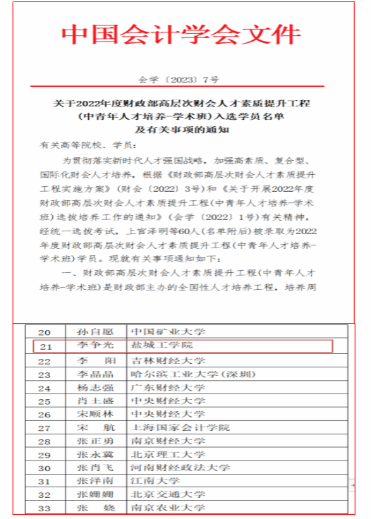日前,2022年度财政部高层次财会人才素质提升工程(中青年人才培养-学术班)选拔结果公布,贝博经管学院李争光博士成功入选。