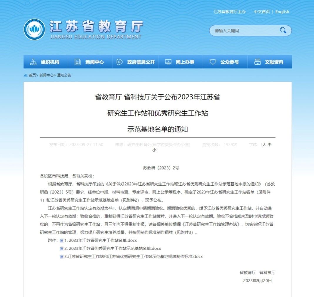 近日,江苏省教育厅、科技厅联合发布《关于公布2023年江苏省研究生工作站和优秀研究生工作站示范基地名单的通知》,贝博新增8家江苏省研究生工作站,获批总数居省内同类高校前列。