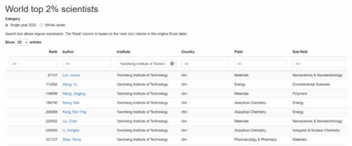 近日,美国斯坦福大学和爱思唯尔数据库(Elsevier Data Repository)共同发布了2023年度全球前2%顶尖科学家榜单(World’s Top 2% Scientists 2023)。该榜单分两个排行榜,“2023年度科学影响力排行榜”集中于科学家上一年度的学术影响力,贝博共8位教师入选,分别是邵荣教授、王伟教授、罗驹华教授、李红波教授、孔粉英教授、王静静教授、刘超副教授和王羽博士;“终身科学影响力排行榜(1960-2023)”统计科学家职业生涯期间的综合影响表现,贝博共2位教师入选,分别是罗驹华教授和王羽博士。