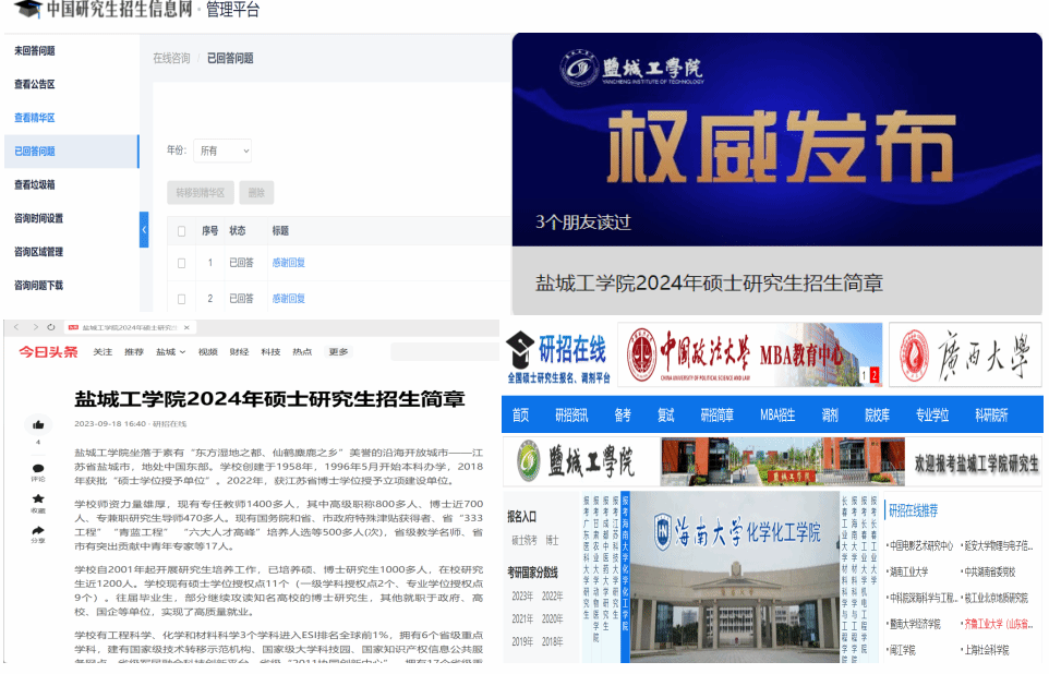 自2023年暑期以来,研究生院利用中国研究生招生信息网、中国研招在线、今日头条、学校官微等各大网络平台,通过制作招生宣传彩页、公众号推送、线上咨询等方式,进行了广泛的研招宣传。各招生学院也积极响应,根据往年生源报考情况,组织招生宣传团队赴全国各地高校进行招生宣讲,全力推进研究生优质生源基地建设工作,为贝博高质量、高层次人才培养奠定坚实基础。