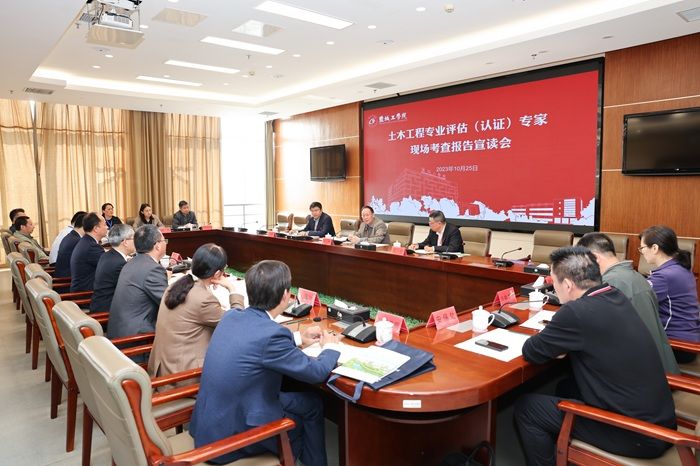 25日上午,土木工程专业评估(认证)现场考查反馈会在行政楼830召开,方志向学校反馈全局性意见,王立、钟炜辉分别陈述个人考查意见和建议。随后,现场考查报告宣读会在行政楼9楼视频会议室召开,方志宣读考查报告,充分肯定了土木工程专业建设取得的成效,并从学业帮扶、教学管理、实验室建设等方面提出了指导性意见和建议。邵荣对专家组全面细致的考查和指导表示感谢,表示学校将按照专家组要求,切实做好整改工作,不断提升专业建设水平。王伟主持宣读会。