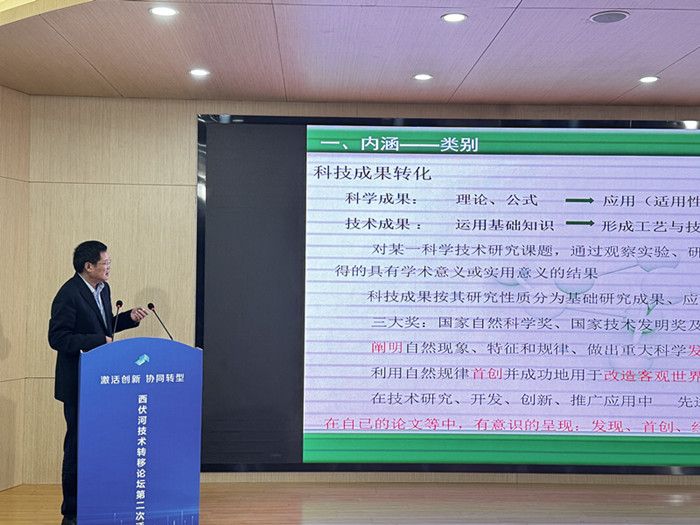 侯贵华作题为《科技成果转化的外延与内涵》的报告