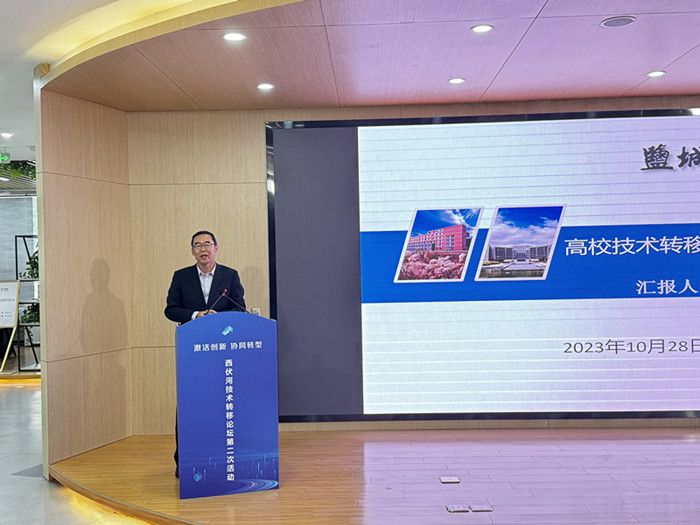 10月28日下午,由科学技术处、产业技术研究院、西伏河协同创新中心联合主办,以“激活创新、协同转型”为主题第二场“西伏河技术转移论坛”在西伏河协同创新中心一楼报告厅举行。副校长、市政协副主席丁成致辞,党委常委、宣传部长奚新国等出席。校级研究所负责人、盐南高新区相关企业代表、校内技术经纪人等近70人参加论坛。科学技术处处长高健主持。