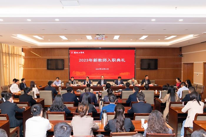 典礼仪式上,新教师集体入职宣誓,参会领导为新入职教师发放了校徽和《bb贝博艾弗森官方网站师德手册》,教师工作部部长、人事处处长、教师培训与发展中心主任沈晓梅介绍了学校的基本情况及入职教育总体安排,材料工程学院教师朱哲誉、电气工程学院辅导员凌悦分别代表新入职教师和辅导员发言。