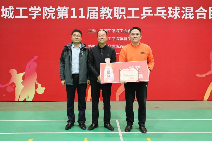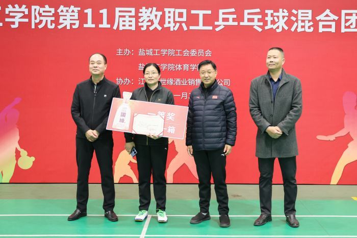 为积极推进全民健身运动和校园文化建设, 11月26日,贝博在希望大道校区风雨操场举办“国缘杯”第11届教职工乒乓球混合团体赛。党委书记方海林,校长、党委副书记邵荣,党委副书记薛浩,党委常委、副校长崔刚,副校长、盐城市政协副主席丁成,党委常委、副校长张勤芳出席。方海林宣布比赛开始并为获特等奖队伍颁奖,邵荣、薛浩分别为获一、二等奖队伍颁奖。工会负责人、基建规划处处长廖大干代表组委会致辞。江苏今世缘酒业销售有限公司盐城大区盐城市区办事处经理徐朋代表赞助商致辞。体育学院党总支书记杨汉华主持开幕式,副院长仇乃民宣读竞赛规程。杨善兵代表运动员宣誓,宁昌峰代表裁判员宣誓。组委会副主任谢毅敏主持颁奖仪式。