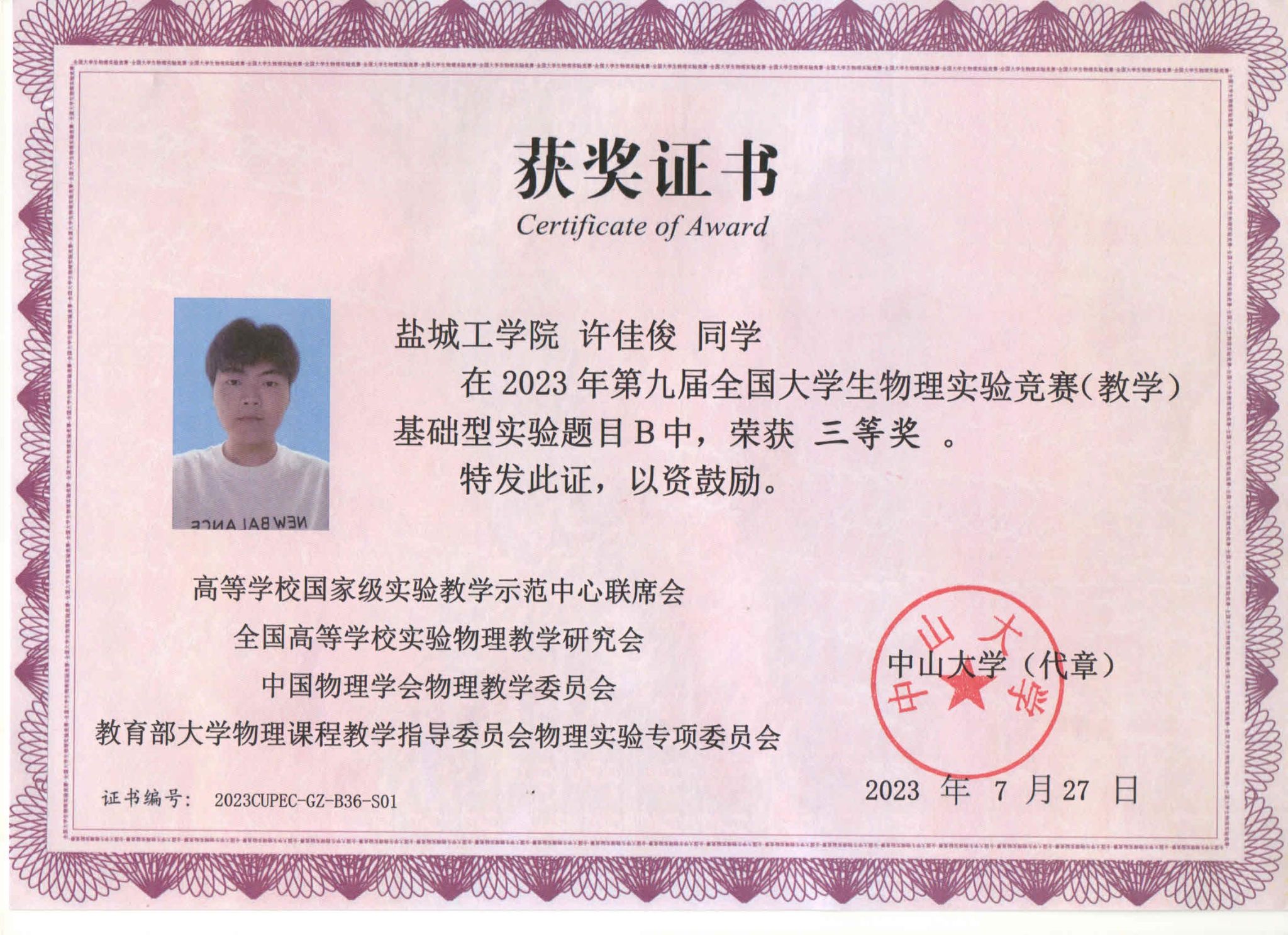 基础型实验题目B | 许佳俊 | 三等奖 | 程鲲、孔凡杰 |
