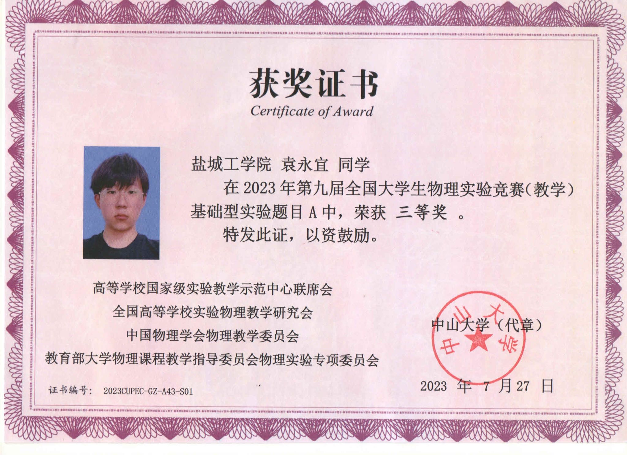 基础型实验题目A | 袁永宜 | 三等奖 | 孔凡杰、程鲲 |