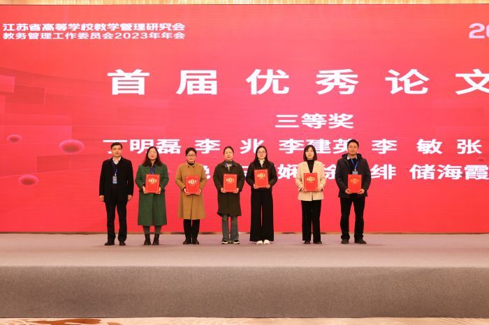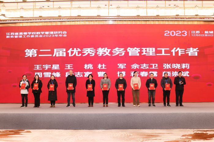 会议表彰了仝娜等10名全省榜样教务员、王宇星等10名优秀教务管理工作者和高红霞等18名优秀论文获奖者。专家报告会先后由江苏省高等教育学会副秘书长王建平、南通理工学院教务处处长倪自银、bb贝博艾弗森官方网站副校长王伟主持,江苏省高等教育学会秘书长邓志良作《教育未来:数字变革与专业升级》、南京师范大学教授沈书生作《富技术赋能高校教与学转型的思考》、宿迁学院副校长郭照冰作《数字赋能教育教学管理的宿院探索与实践》、江苏安全技术职业学院副校长吉智作《数智同行,打造“三导向三维度”教学管理新高地》、江苏大学教务处副处长李新朝作《数字赋能教务管理系统迭代升级》、江苏医药职业学院校长殷忠勇作《教育数字化赋能高质量医学人才培养的实践与思考》、常州大学教务处副处长陆怡作《高质量发展视域下常州大学现代产业学院建设实践》、南京财经大学教务处处长朱红根作《数字化转型助力本科教学管理水平提升》、南京信息职业技术学院教务处处长杨前华作《教学管理数字化转型的南信探索与实践》、bb贝博艾弗森官方网站教务处处长余晓红作《校地融合,多维协同—地方高校新时代卓越工程师培养的“盐工模式”》等报告。相关企业就高校数字化建设作了业界分享报告。