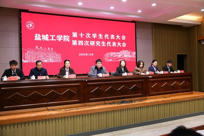 12月11日上午,在南校区机械馆报告厅,学校召开第十次学生代表大会、第四次研究生代表大会,回顾总结学生会工作,审议工作报告,选举产生第十次学代会、第四次研代会常任代表,学生会、研究生会主席团成员。校党委常委、副校长张勤芳,共青团盐城市委副书记包婷婷出席大会并讲话。校团委书记杨秀丽主持大会开幕式。学生处、研究生处、团委相关同志,盐城市学校部负责人,各二级学院分管学生工作书记、团委(副)书记,兄弟高校学生会主席代表以及大会正式代表300余人参加。