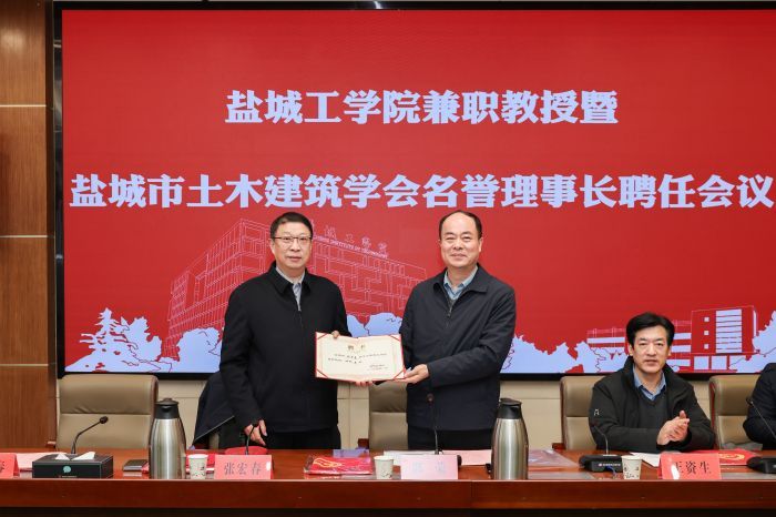2月2日下午,学校在希望大道校区行政楼9楼会议室举行兼职教授暨盐城市土木建筑学会名誉理事长聘任仪式。校长、党委副书记邵荣,党委常委、副校长王资生,原党委常委、副校长宋长春,盐城市住房和城乡建设局原党组书记、局长张宏春,盐城市科协党组成员、副主席高福华,盐城市住房和城乡建设局原党组副书记、副局长张亚仿,盐城市住房和城乡建设局党委委员、市园林局副局长姚秀琴等出席。盐城市土木建筑学会理事长、贝博土木工程学院荀勇教授,盐城市土木建筑学会副理事长、土木工程学院院长吴发红,盐城市土木建筑学会相关成员参加活动。高福华主持。