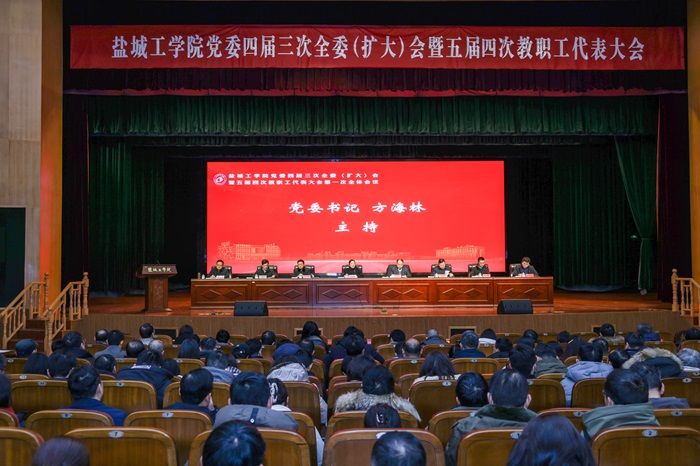 2月24日,学校在希望大道校区行政楼报告厅召开党委四届三次全委(扩大)会暨五届四次教职工代表大会,回顾总结2023年工作,安排部署 2024 年重点工作任务。校党委书记方海林主持第一次全体会议,党委副书记、校长邵荣主持第二次全体会议。党委副书记薛浩,党委常委、副校长崔刚、王资生,副校长、盐城市政协副主席丁成,党委常委、副校长王伟,党委常委、纪委书记、省监委派驻bb贝博艾弗森官方网站监察专员陈伟,党委常委、副校长张勤芳,党委常委、统战部部长姚军,党委常委、组织部部长邢晓平,党委常委、宣传部部长奚新国出席。