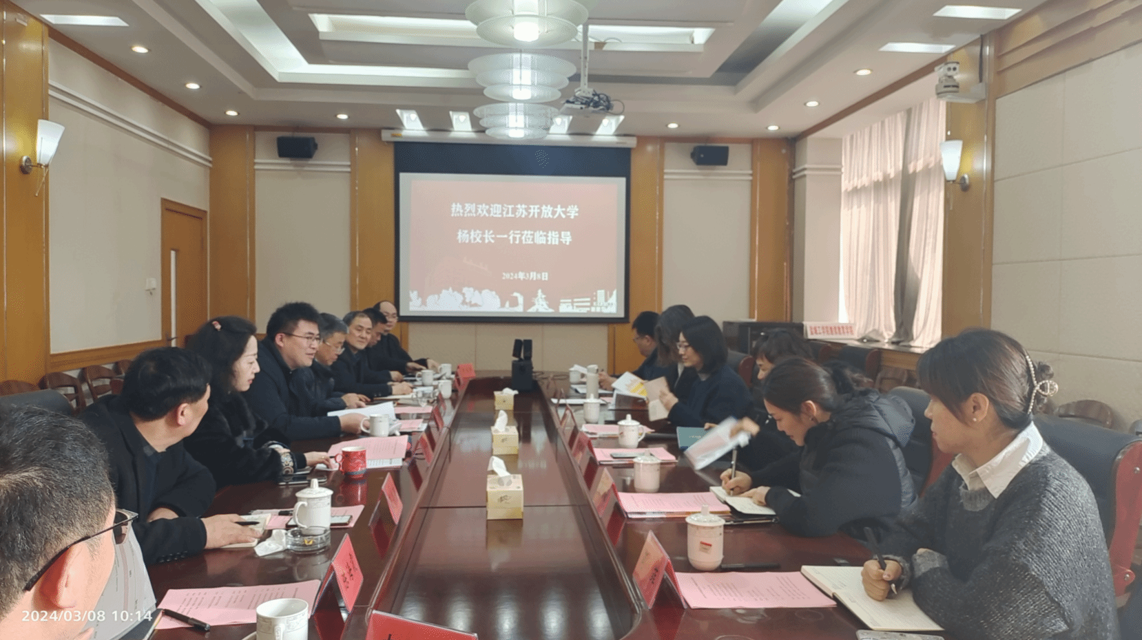 3月8日上午,江苏开放大学党委常委、副校长杨羽一行来贝博调研开放大学工作。学校在建军东路校区图书馆301会议室召开工作交流会,校党委常委、副校长张勤芳出席。盐城开放大学副校长、贝博继续教育学院副院长夏金海、李晓燕,东台开放大学校长虞静东,建湖开放大学党委委员陈强等参加。