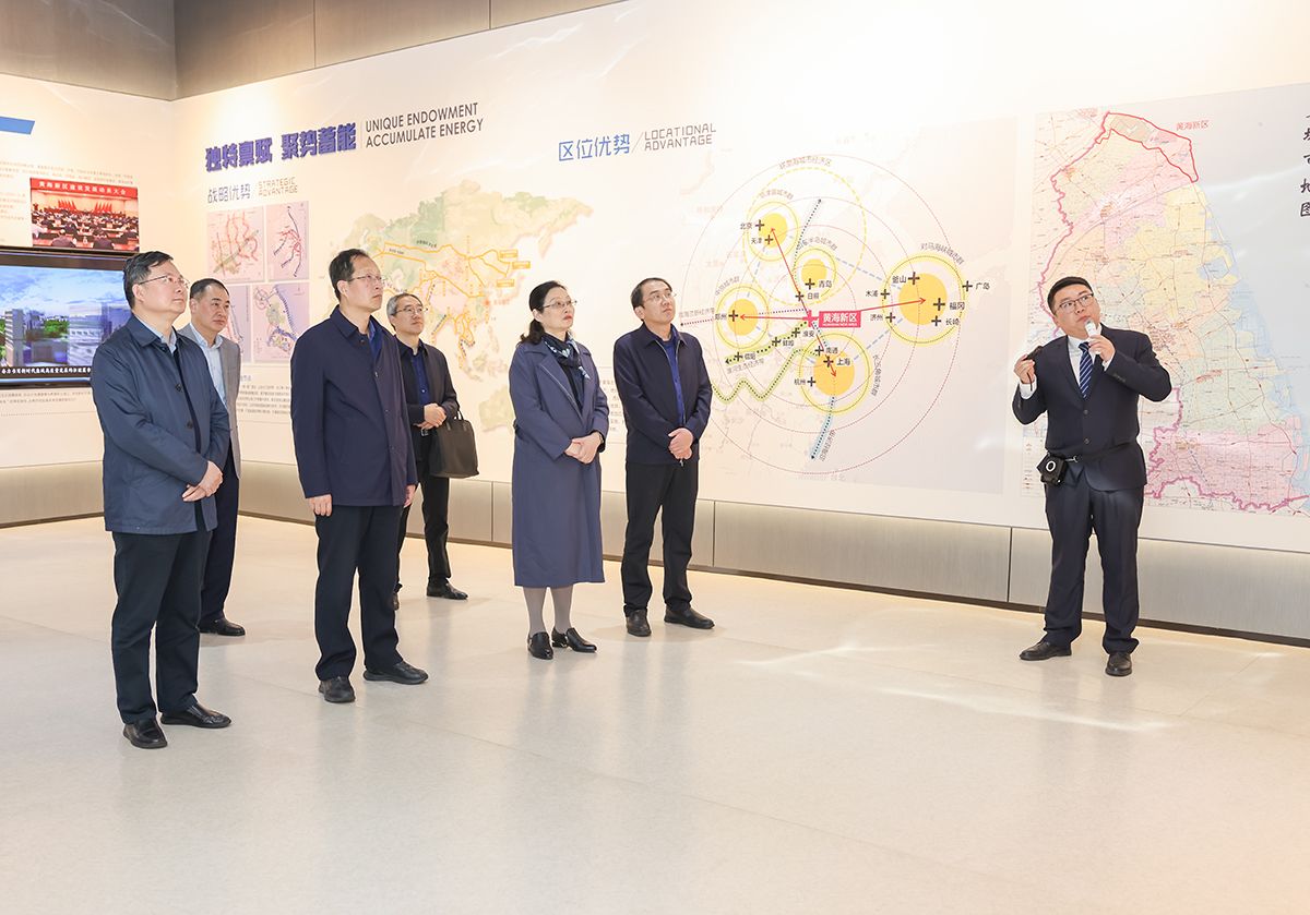 在黄海新区规划展示馆,海兴控股集团工作人员为贝博一行介绍了黄海新区的历史变迁、经济情况、文化建设、未来规划等内容。方海林等人观看了黄海新区宣传片,并不时与工作人员交流,询问盐城钢铁职业技术学院等基础设施与平台建设的详细信息。