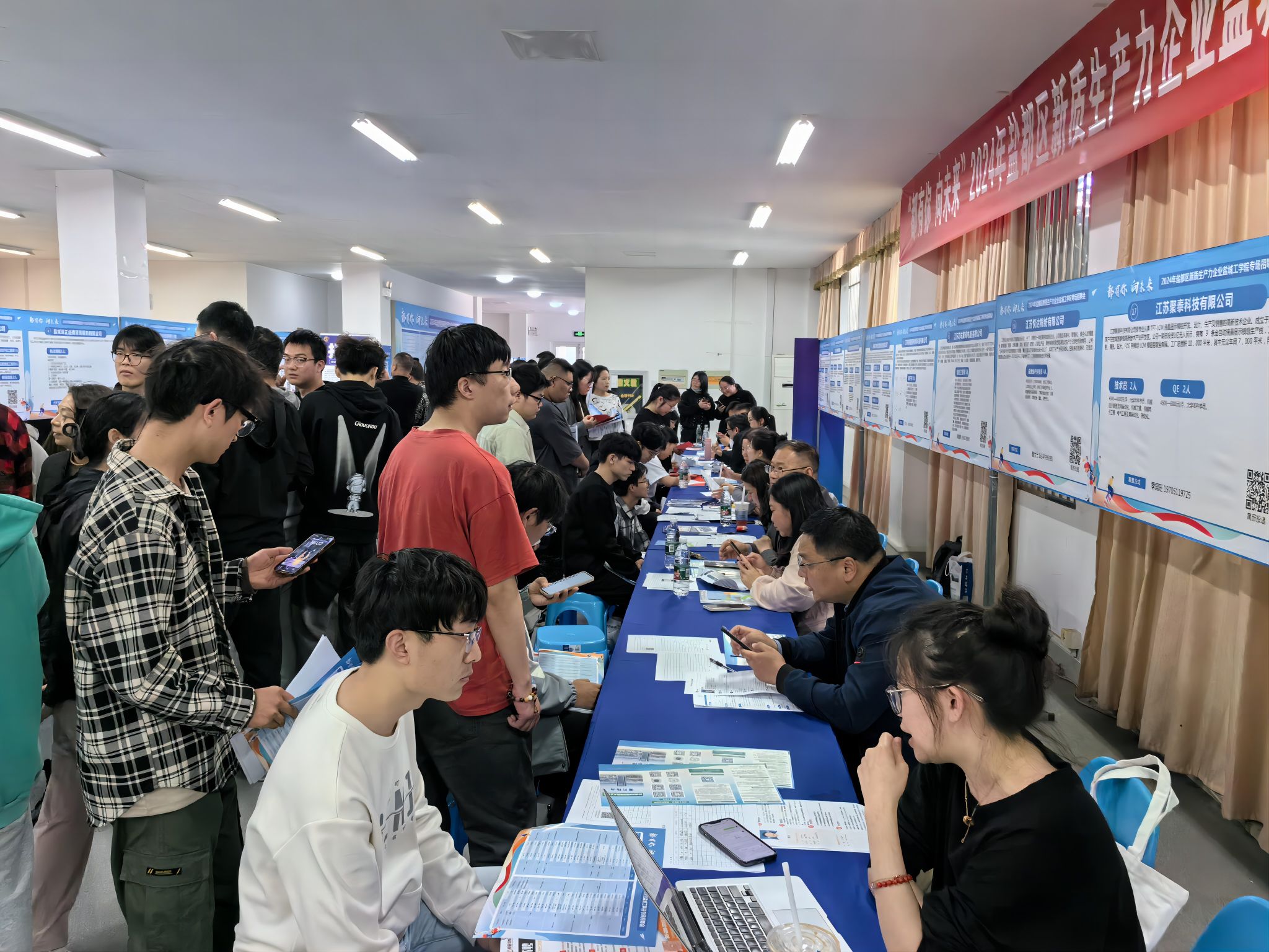 盐都区人社局校招负责人潘思雨主任表示,“学校就业指导中心每年都会向我们提供毕业生的生源信息情况,区人社部门也会将企业所需的专业需求交流到学校,这是校企双方一个互相奔赴的过程,也是基于这样非常好的合作,每年区里都能从盐工招聘到需要的专业人才。”盐城艾迪生生物科技有限公司人力资源主管说,“我们这次带来了研发岗位、技术岗位,希望能在盐工招到合适的优秀毕业生,为企业的新质生产力发展提供人才支撑。”