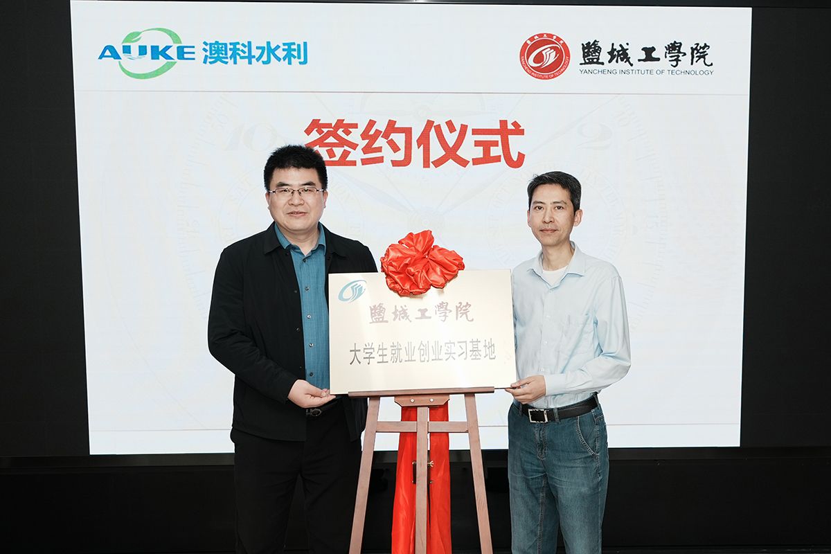 方海林、张勤芳为无锡中科光电技术有限公司、无锡市东晖新材料科技有限公司、澳科水利科技无锡有限公司、江苏德斯嘉环境智能科技有限公司、南通黑骏马视觉设计工程有限公司大学生就业创业实习基地授牌,颁发就业创业导师聘书。学生处、招生与就业创业指导处处长徐新华代表学校与企业签订大学生就业创业实习基地共建协议。