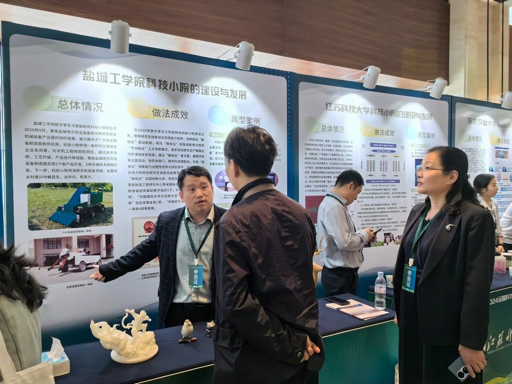 大会设置了科技小院成果展,来自全国各地38所高校、科研院所应邀参展。贝博在本次成果展上通过展板和实物展品集中展示了贝博科技小院在人才培养、科技创新、社会服务等方面取得的重要成果,并重点推介了贝博数字孪生与智能制造科技小院面向盐城地区农业机械装备3D打印与集成应用的创新成果,数字孪生与智能制造科技小院专家卢倩教授在现场进行展品讲解。