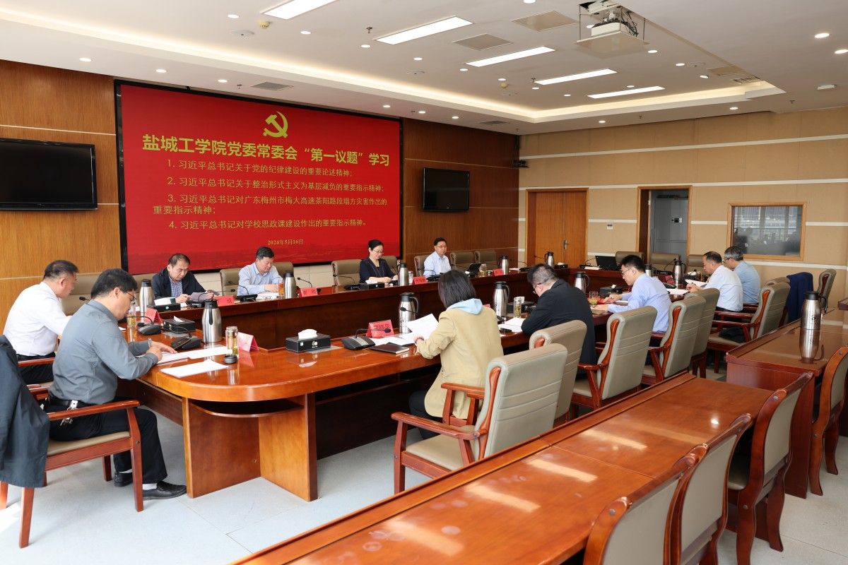 党委书记方海林主持。党委副书记薛浩,党委常委、副校长崔刚,副校长、盐城市政协副主席丁成,党委常委、副校长王伟、张勤芳,党委常委、党委统战部部长姚军,党委常委、党委组织部部长邢晓平,党委常委、党委宣传部部长奚新国出席,党办、纪委办等部门主要负责人参加。
