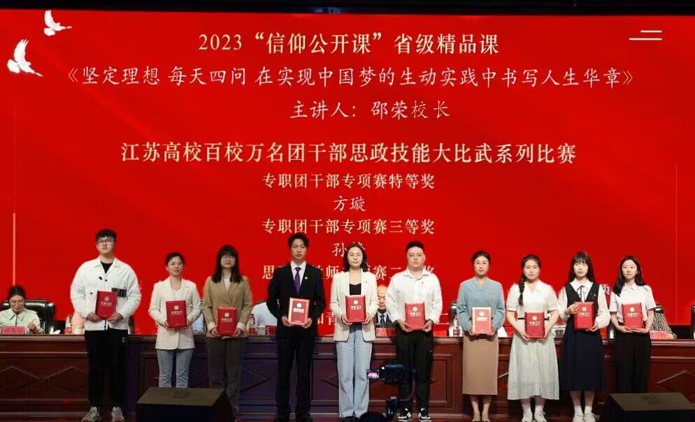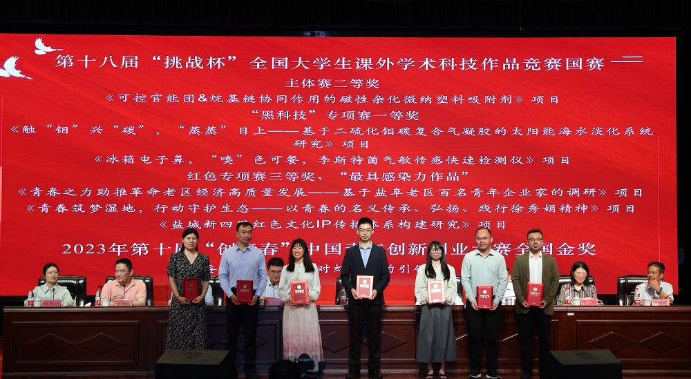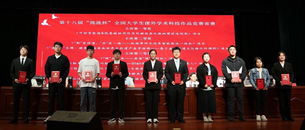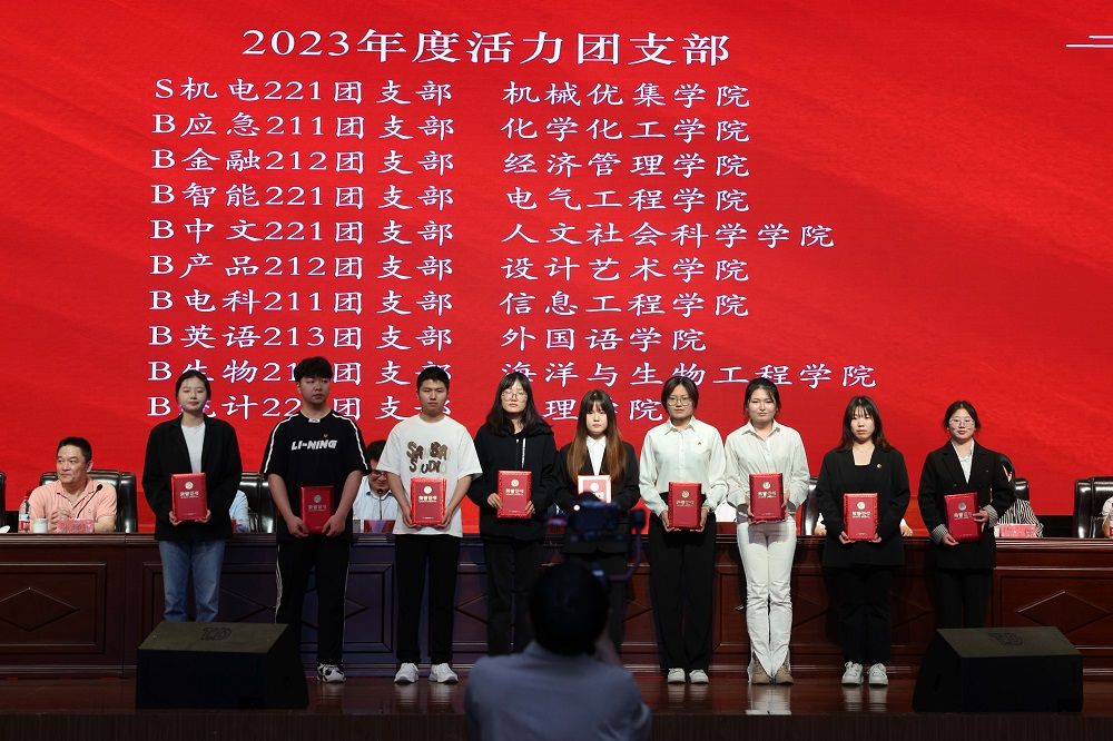会上,姚军宣读2023年“挑战杯”国家、省级竞赛获奖名单;奚新国宣读2023年“信仰公开课”省级精品课、全省团干部思政技能大比武系列比赛、暑期“三下乡”社会实践活动、志愿服务类获奖名单;党委研工部部长许伟宣读第六届紫金合唱节、江苏省第七届大学生艺术展演活动获奖名单;党委保卫部部长张晓东宣读《关于表彰bb贝博艾弗森官方网站2023年度“五四红旗团委(标兵)”“共青团先进工作者”的决定》;校工会主席、基建处处长廖大干宣读《关于表彰bb贝博艾弗森官方网站2023年度“百佳青年学生”“十佳共青团员标兵”“魅力团支书”“活力团支部”的决定》;校团委书记杨秀丽宣读《关于表彰bb贝博艾弗森官方网站2023年度“挑战杯”工作优秀组织奖、先进个人的决定》。主席台领导为2023年度获表彰的集体和个人颁发了奖牌和证书。获第18届“挑战杯”国赛主体赛二等奖项目指导老师代表、化学化工学院张向楠老师,江苏省优秀志愿者代表、机械优集学院B机械201班王圣博同学分别作交流发言。