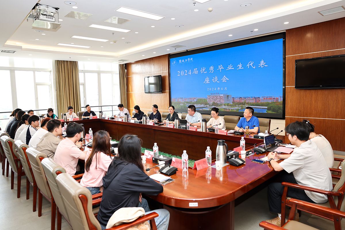 “南校区的青衿湖,可爱的黑天鹅,绿植密布的梧桐大道,是我在备考期间的精神慰藉。”“在盐工的四年,我遇见了严谨踏实的老师、知心有爱的辅导员、志同道合的朋友,他们丰富了我的生活,让我获得了成长,学会了沟通、团结、包容与感恩”“盐工的学习氛围令我深受震撼,让我懂得了学习的珍贵,更是学会了学习这门技术活儿”“感谢母校给予我一个又一个登高望远的阶梯,让我有能力、有底气站在更高的平台上不断成长。”与会毕业生代表围绕大学感悟及人生规划畅所欲言,分享了在校期间的学习生活、学科竞赛、社会实践、同窗友谊等经历和故事,纷纷表达了对母校的感恩之情和怀念之意。