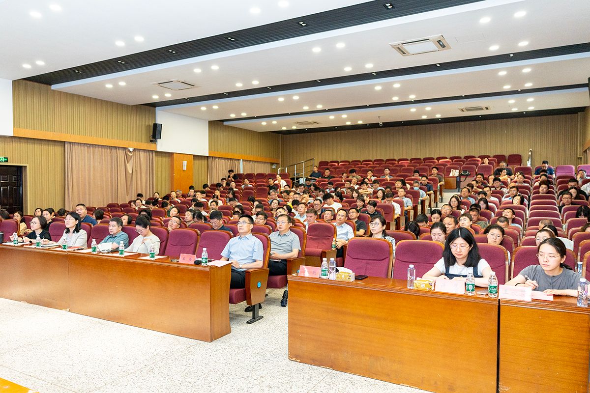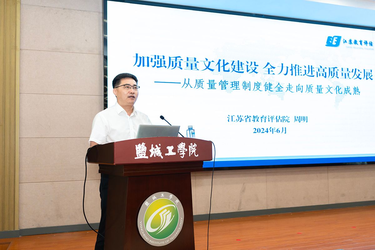6月27日上午,在希望大道校区机械馆报告厅,学校邀请江苏省教育评估院院长周明来校作审核评估工作专题报告。党委常委、副校长王伟主持。评建办成员单位及二级学院科级以上干部,相关部门和直属单位主要负责人,教师和学生代表等200余人参加。