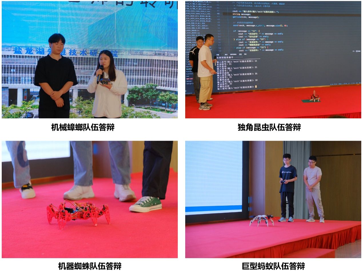 盐龙湖智能制造暑期学校80名2024级研究生学员分8支队伍,分别完成了机械蟑螂、独角昆虫、飞蛾机器人、机器蝴蝶、机器蜘蛛、巨型蚂蚁机器人、智能机器蝎和机械甲虫等8款机械昆虫的实物样机开发与制作,并在活动现场进行了项目路演与汇报答辩。暑期学校活动指导老师卢倩对各队伍的方案进行了点评与互动,并由9位专家评委现场打分并决出一二三等奖。研究生学员代表蒲一雄同学作表态发言。