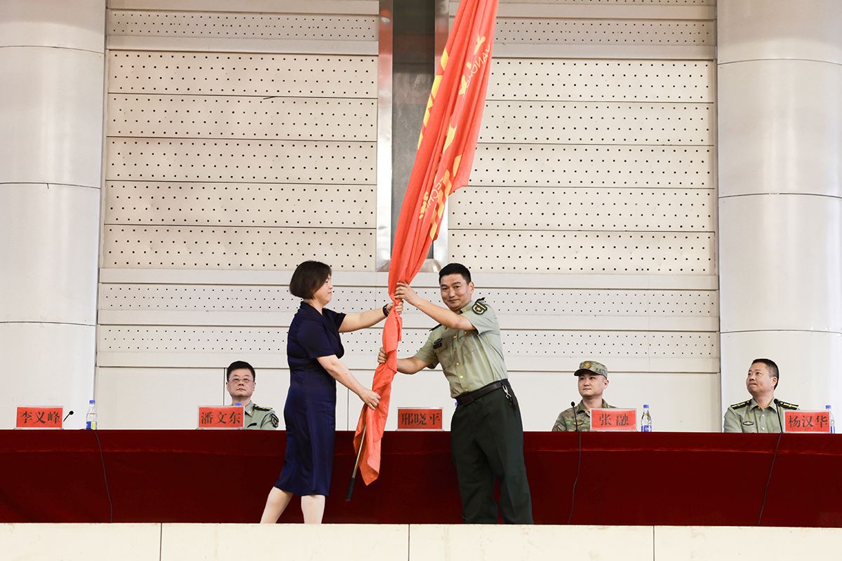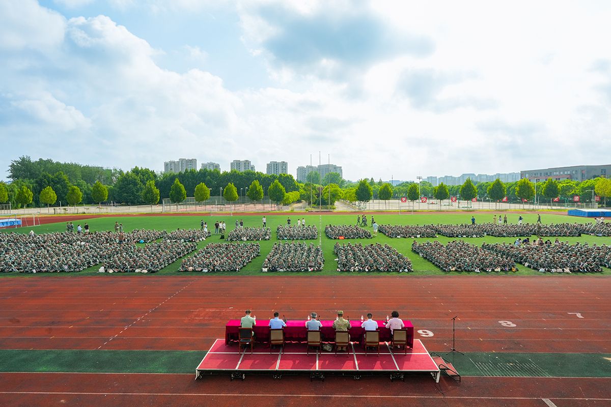 张融、高恺翾对学校长期以来军地共建所做的贡献表示感谢,希望同学们利用好此次军训的机会,勤奋学、刻苦练,不断挑战自我、超越自我、完善自我,发扬团结互助精神,强化集体荣誉感,全面展示新时期大学生的精神风貌;要求全体带训教官要发扬部队优良传统,当模范、做表率,科学训、耐心教,严组织、保安全,高标准高质量圆满完成本次军训任务。
