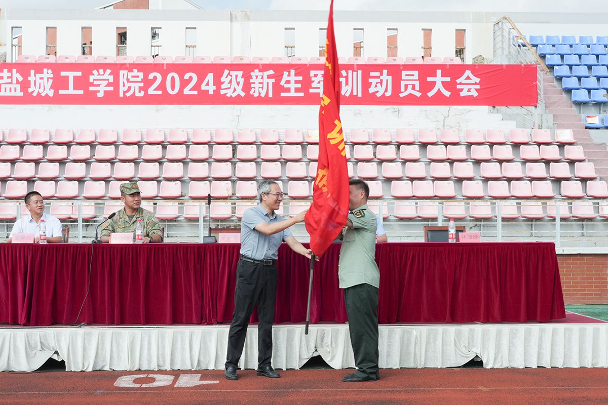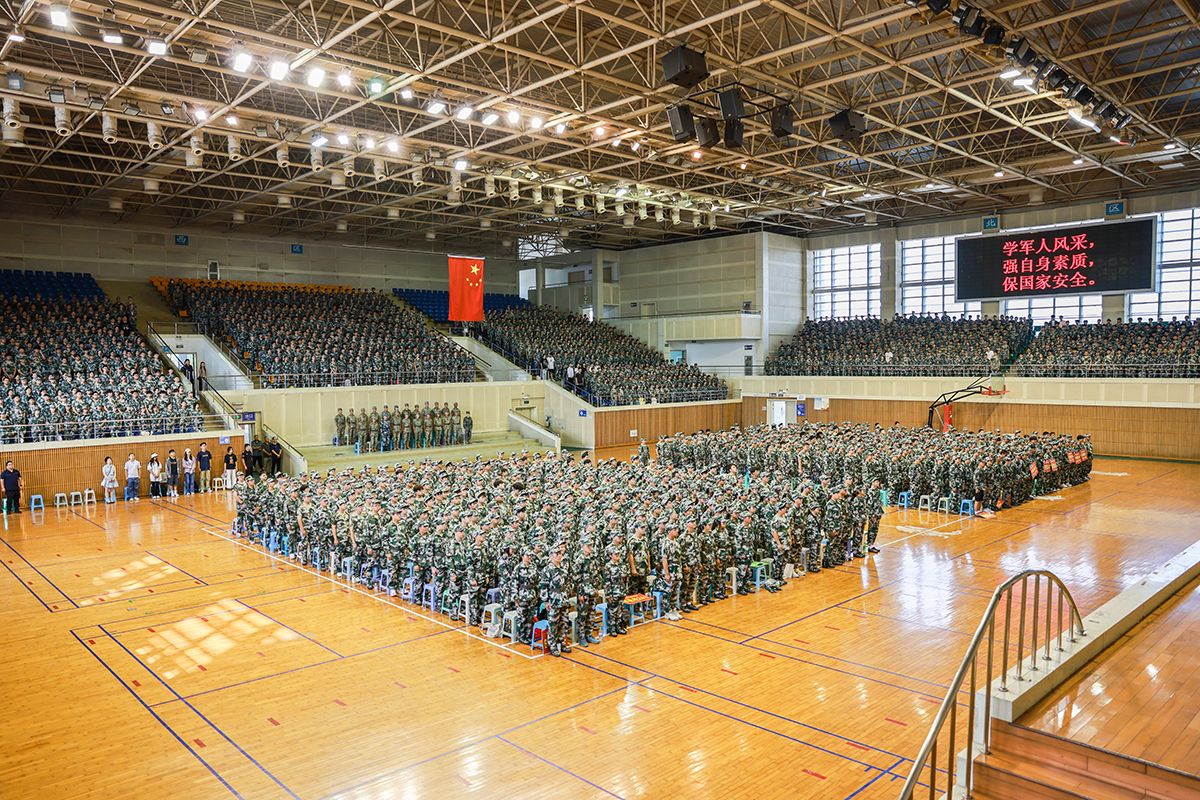 9月9日上午,在激昂的军歌声中,贝博2024级新生军训工作正式拉开帷幕。动员大会分别在建军东路校区体育馆、希望大道校区田径场召开。校党委常委、副校长、组织部部长邢晓平,党委常委、宣传部部长奚新国为军训旅授旗。73106部队营教导员张融、连长高恺翾,校党委人武部部长李义峰,体育学院党总支书记董学兴,后勤服务集团总经理潘文东、党委书记李刚等部门负责同志出席动员大会。校党委学工部部长杨汉华、副部长马晓英主持。