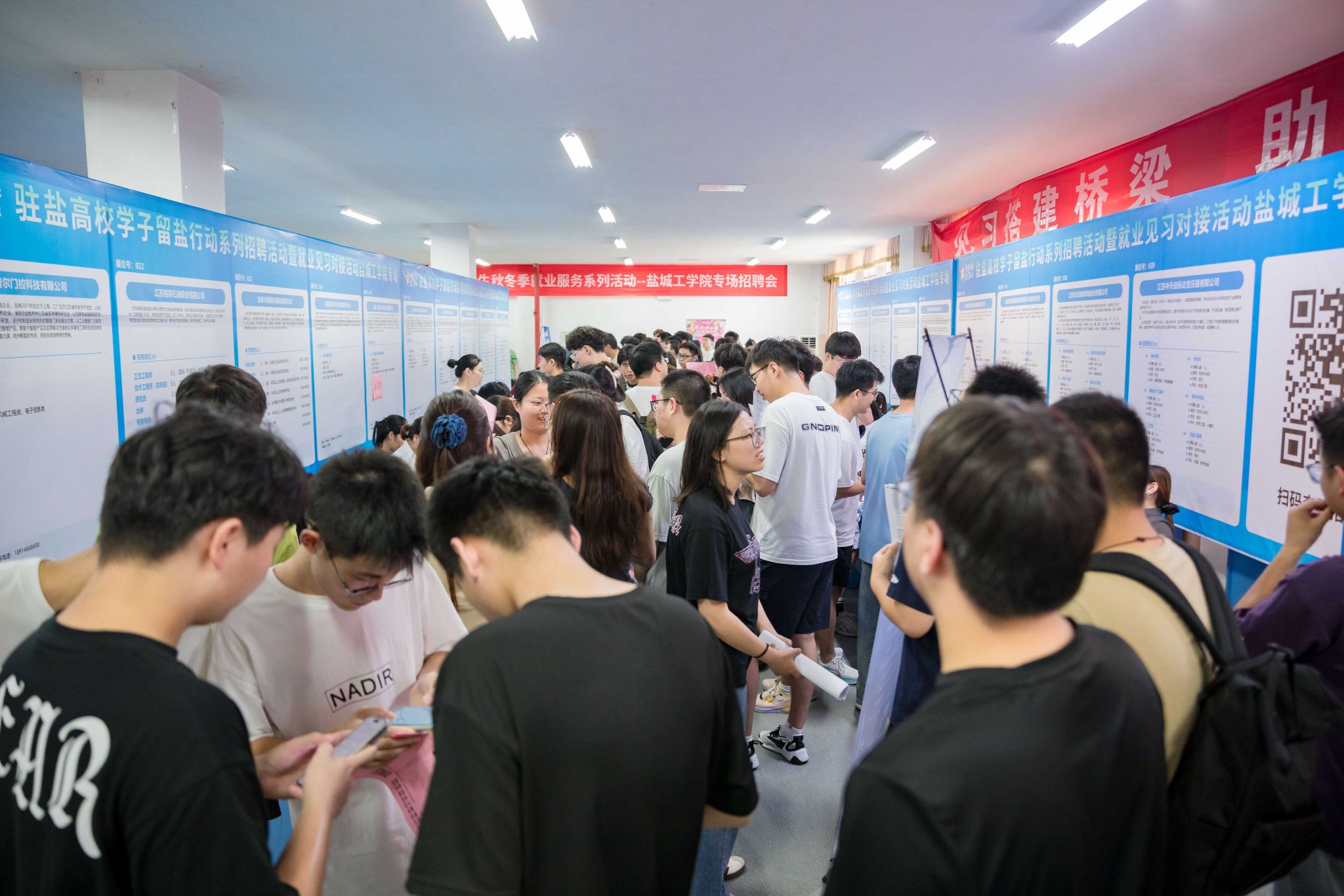 为深入贯彻国务院、省委省政府关于加强高校毕业生就业创业工作部署要求,大力实施“驻盐高校学子留盐”行动,做好高校毕业生就业服务工作,为加快建设绿色低碳发展示范区提供人才支撑,9月18日下午,在希望大道校区大学生活动中心一楼就业市场,学校举办驻盐高校学子留盐行动系列招聘活动暨就业见习对接活动bb贝博艾弗森官方网站专场招聘会。党委常委、副校长、组织部部长邢晓平现场指导。江苏省沿海人才市场负责同志、招生与就业创业指导处负责同志及相关工作人员,2025届毕业生等参加。