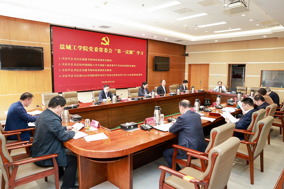 会议学习了习近平总书记在福建、安徽考察时的重要讲话精神,强调,要深入学习贯彻党的二十大和二十届三中全会精神,全面贯彻新发展理念,坚持稳中求进工作总基调。要建设高素质专业化干部队伍,持续弘扬优良作风,提高服务意识,忠诚履职尽责。要统筹谋划教育、科技与人才体制机制的一体化改革,加大高层次人才的引进力度,坚定不移推动学校各项事业高质量发展,奋力谱写盐工发展新篇章。