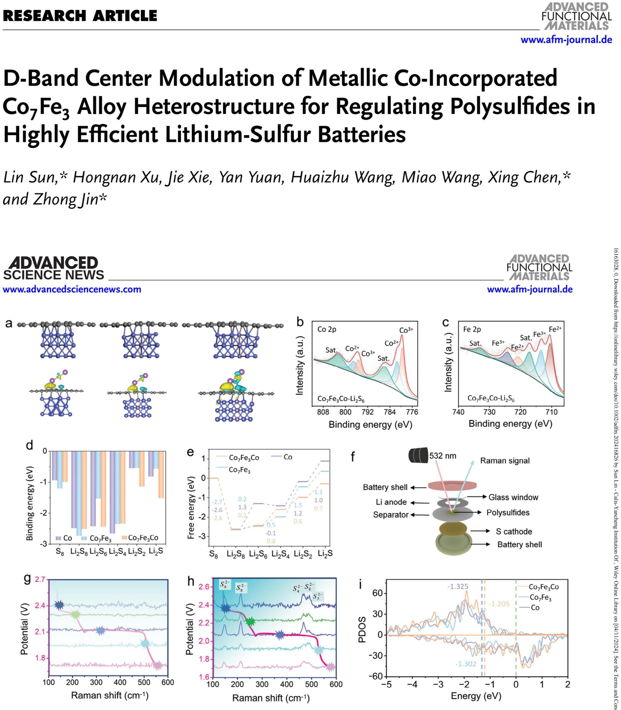 近日,贝博孙林副教授团队在材料领域顶级期刊《Advanced Functional Materials》(1区top期刊,影响因子18.5)上发表题为“D-Band Center Modulation of Metallic Co-Incorporated Co7Fe3 Alloy Heterostructure for Regulating Polysulfides in Highly Efficient Lithium-Sulfur Batteries”的研究论文(DOI: 10.1002/adfm.202416826),bb贝博艾弗森官方网站为第一署名单位,化学化工学院/科技资源统筹中心孙林副教授为论文第一/通讯作者。