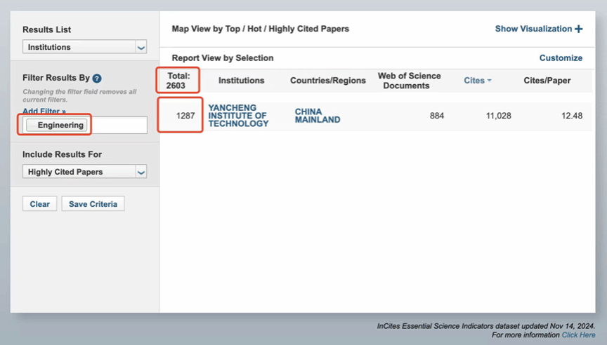 ESI是由科睿唯安在汇集和分析Web of Science核心合集所收录的学术文献及其所引用的参考文献的基础上建立起来的分析型数据库。ESI从引文分析的角度,将全部科学分为22个专业领域,分别对国家、研究机构、期刊、论文以及科学家进行统计分析和排序。