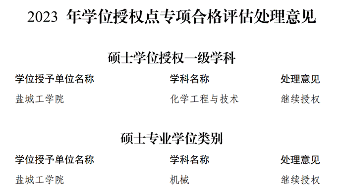 近期,《国务院学位委员会 教育部关于下达2023年学位授权点专项合格评估处理意见的通知》(学位〔2024〕25号)发布,贝博化学工程与技术和机械2个硕士学位授权点成功通过专项合格评估,获得“继续授权”资格。这表明贝博首批2个硕士学位授权点建设及研究生培养质量得到国务院学位委员会及教育部的充分肯定。