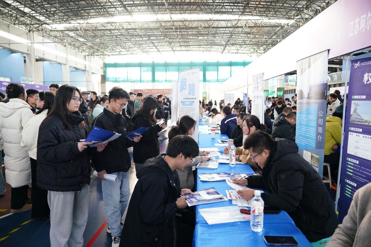 本次招聘会共有192家企事业单位参会,其中包括江苏吉能达环境能源科技有限公司、江苏博汇纸业有限公司、江苏金韦尔机械有限公司、亚朵集团南京分公司等校企合作企业;康佳芯云半导体科技(盐城)有限公司、无锡一棉纺织集团有限公司、徐州徐工新能源动力科技有限公司等国有企业、上市企业;南京市溧水区、南通市海安市人社部门组团招聘企业。参会单位涵盖机械制造、电子信息、生物医药、金属材料、海洋工程、化工技术、纺织服装、金融服务、人文教育等多个领域。招聘会现场还设置了简历指导、面试提升、生涯咨询、征兵入伍、心理加油站等一站式服务专区,将职业规划与就业指导课程延伸至招聘会现场,为毕业生顺利求职精准助力。