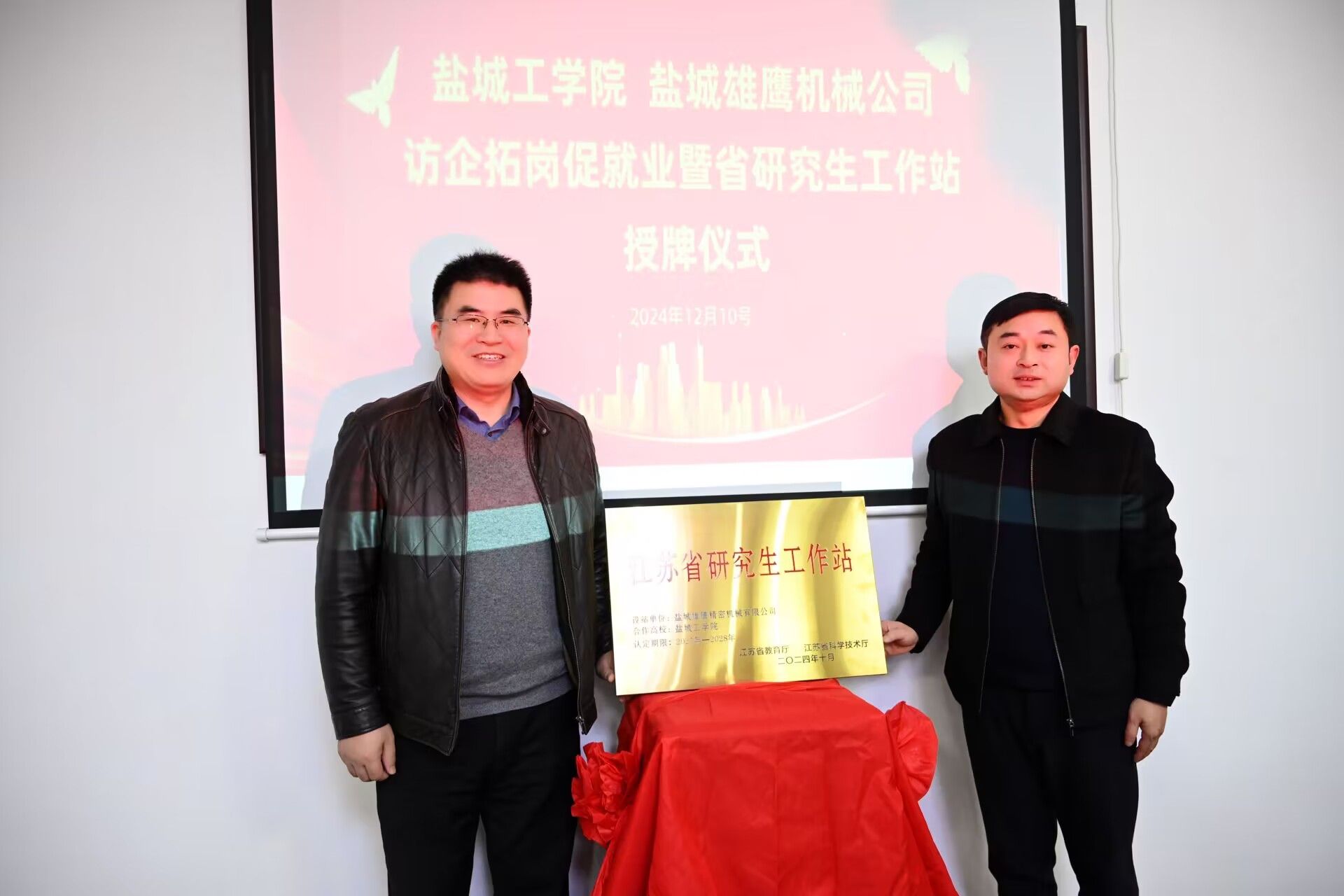 12月10日下午,党委常委、副校长张勤芳为江苏中创清源科技有限公司、盐城雄鹰精密机械有限公司等两家江苏省研究生工作站授牌。江苏中创清源科技有限公司副总经理霍文强、盐城雄鹰精密机械有限公司董事长郭乃宏热情接待贝博一行。