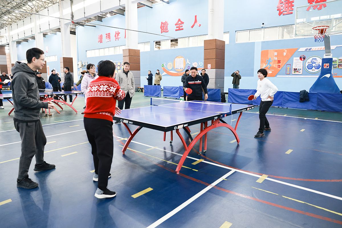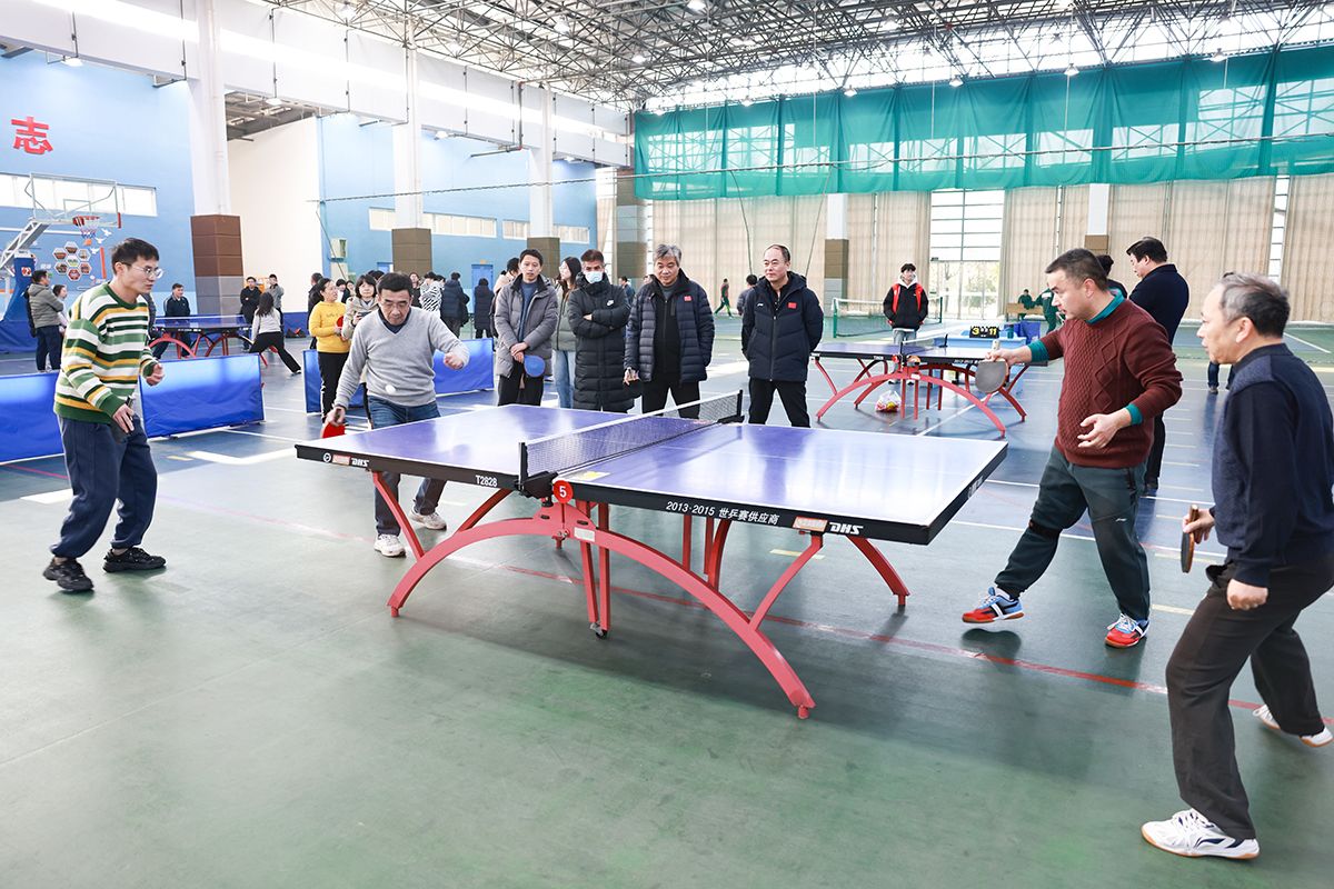 邵荣致辞并宣布比赛开幕。他指出,在2025年元旦举行教职工乒乓球赛,对于激励全校教职工重视体育锻炼,以良好的身体素质推进学校高质量发展具有重要意义。他鼓励全体参赛教职工在比赛中发扬团结协作、顽强拼搏的精神,赛出风格、赛出水平。王冲代表赞助商致辞,介绍了国缘酒业概况,向参赛教职工表示美好祝愿。仇乃民宣读竞赛规则,说明执行乒乓球比赛最新规则。土木学院姚金涛、体育学院陈雯雯分别代表运动员、裁判员庄严宣誓,承诺将在比赛中秉持公正、公平、公开的原则,尊重对手、尊重裁判,遵守比赛规则,展现良好的体育精神。
